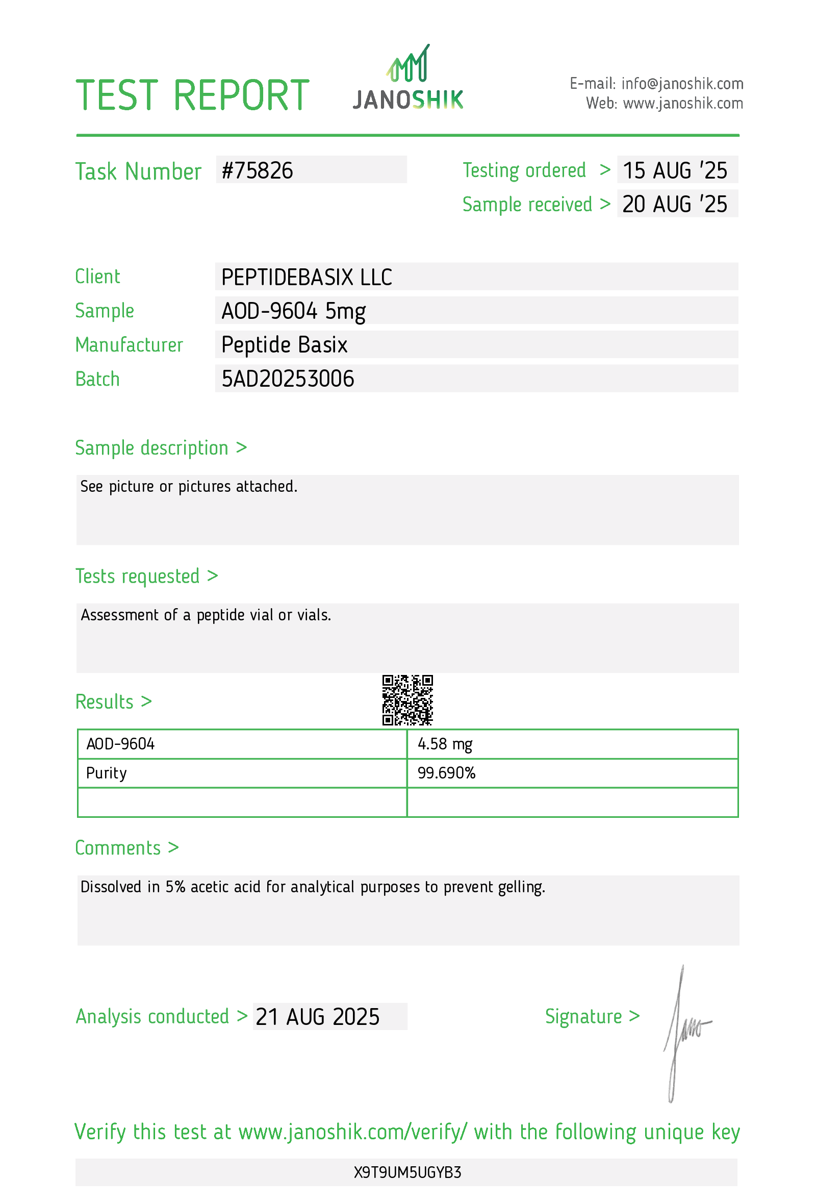 Note: The COA image shown may reflect an earlier label design. Product labeling has been updated, but contents and specifications remain the same.